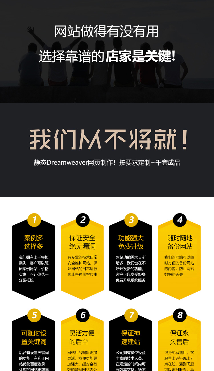 支持全平台运行,自由布局,一键安装模板,自适应各种终端设备,企业形象必备!